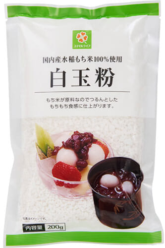 ビニール袋に白玉粉を入れ、麺棒で押し潰しながらサラサラにする。