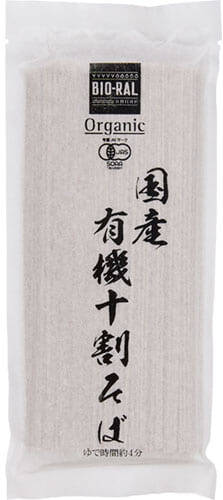 そばをパッケージの表示通りにゆで、ザルに取って水で締め、盛り付ける。